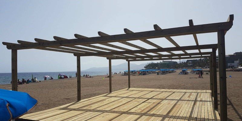 Suministro e instalación de duchas y pérgola en playa isla de tenerife