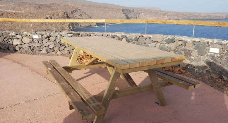 Suministro de mobiliario de madera para mirador en la Gomera